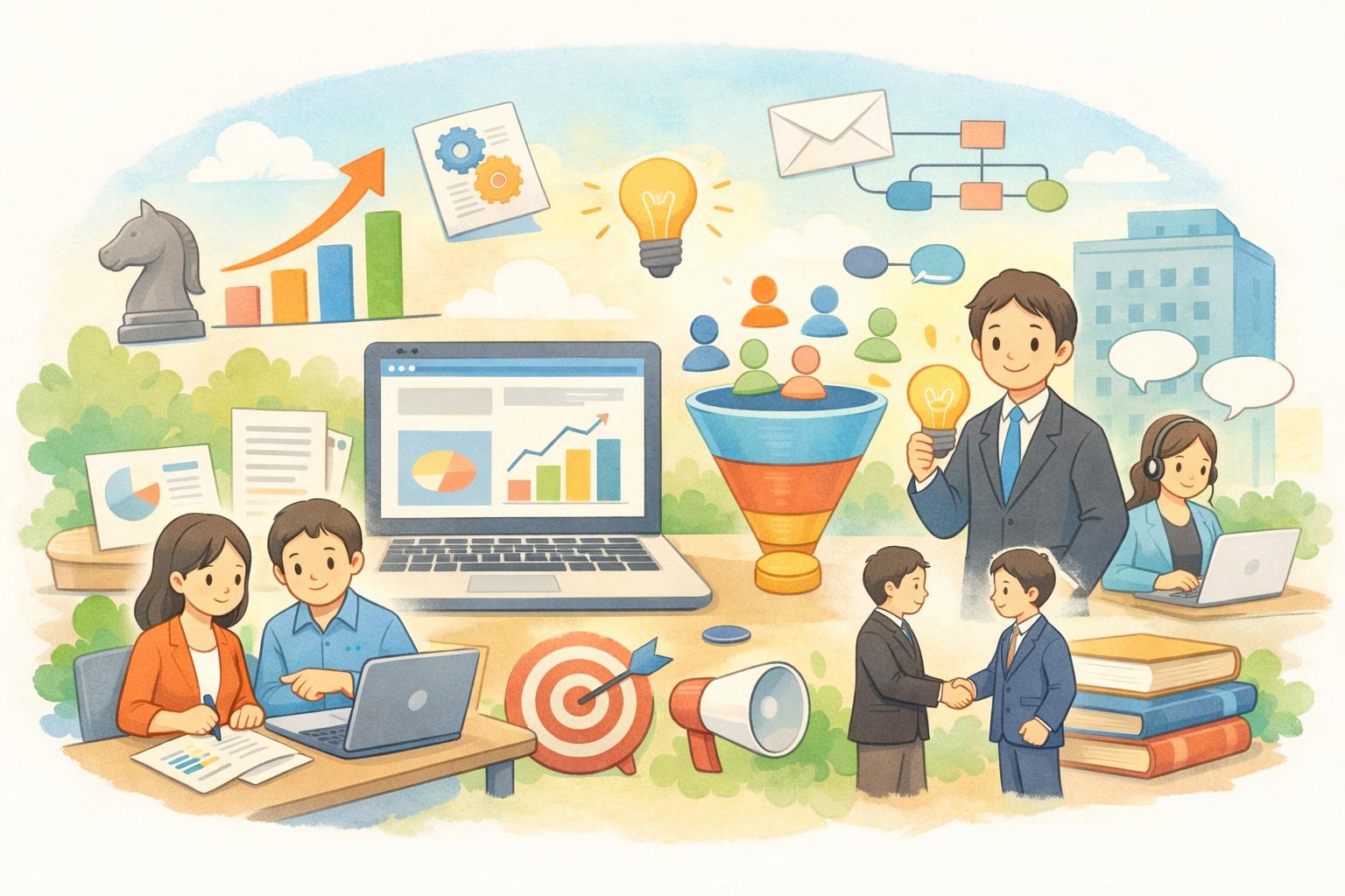 多くの中小企業が事業成長を目指す中で、顧客獲得は常に大きな課題として立ちはだかります。特にBtoB(企業間取引)においては、取引単価が高く、意思決定プロセスが複雑であるため、新規顧客の開拓は容易ではありません。限られたリソースの中で、いかに効率的かつ効果的に見込み顧客を発掘し、信頼関係を構築していくかが、中小企業にとっての生命線となります。